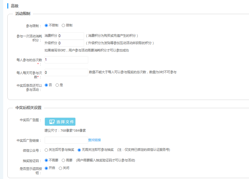 实物奖励:中奖后,可凭小票和中奖页面进行兑奖(商家可输入密码进行兑奖成功)